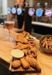 Tenders poulet, Tenders poulet épicé, onions rings, chili cheese, tweezers cheese, bouchées de camembert, sauce tartare