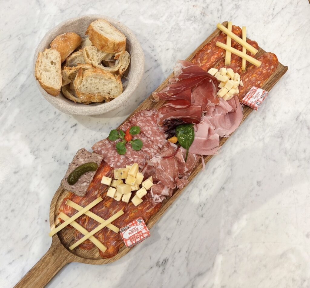 Jambon de parme, coppa italienne, spianata picante, jambon cuit, rosette de Lyon, pâté de campagne, tomme Kerbizien, comté 13 mois
